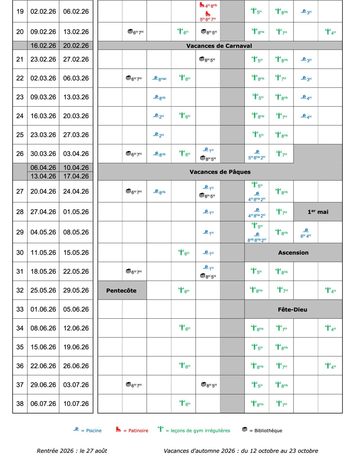 - 19 au 23.01.26 : Camp de ski 5-8H à Lenk