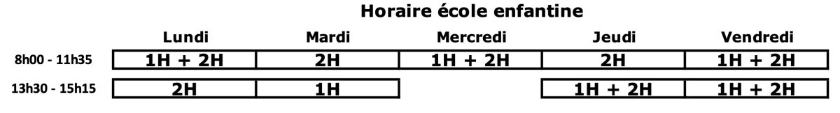 Afin de laisser un maximum de temps pour la préparation du spectacle, l'horaire de classe pour les 1-2H sera le suivant :